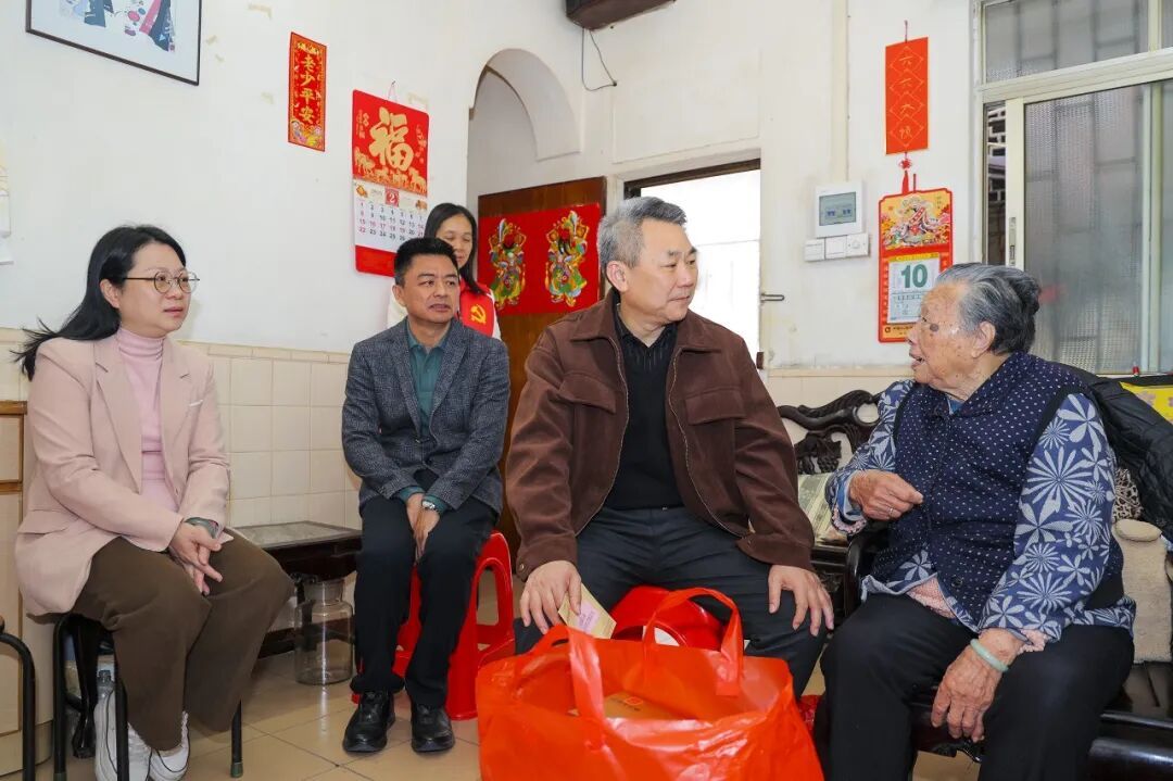 在中山西社区,陈细钿、袁锦波一行走进百岁老人群姨家中,与老人促膝交流,看到老人精神矍铄、思维清晰,大家倍感欣慰,祝愿她健康长寿、生活舒心。慰问团还先后走访低保户彭先生、老党员广叔及功臣模范明叔,关切询问他们的生活需求、身体近况及家庭情况。陈细钿感谢老党员和功臣模范为社会发展作出的贡献,要求相关部门用足用好优抚政策,提升服务温度,真正把关怀送到他们心坎上。